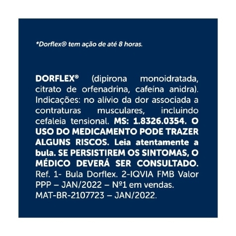 O Dorflex® é a solução completa para o alívio de dores que envolvem o sistema muscular. Sua fórmula exclusiva combina ação analgésica e relaxante, sendo o aliado ideal para combater as tensões causadas pela rotina, má postura ou esforço físico.